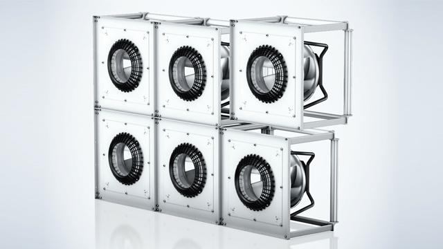 空調機組風墻為了能夠實現更高的空氣性能,是將多臺EC離心風機并聯運行的,它采用的是模塊化的設計,即插即用,安裝組合更加的智能靈活便捷,而且節省空間。還有一點就是采用冗余設計大幅提升了系統的可靠性,在運行時如果某一臺EC離心風機發生故障,其他風機會通過提高風量的方式來補償損失的風量。