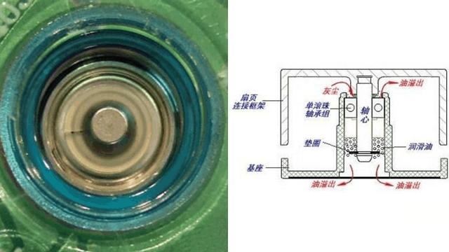 單滾珠軸承(1 Ball+1 Sleeve Bearing)是對傳統(tǒng)含油軸承的改進,采用滑動摩擦和滾動摩擦混合的形式,其實就是用一個滾珠軸承搭配一個含油軸承的方式來降低雙滾珠軸承的成本,它的轉(zhuǎn)子與定子之間用滾珠進行潤滑,并配以潤滑油。